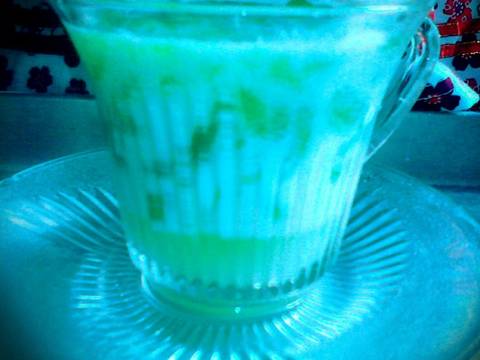 Penyajiannya,ambil 2 sdm cendol,masukkan digelas,siram dengan kuah santan,langsung bisa disajikan(tunggu magrib dulu),btw ditambah es batu lebih seger