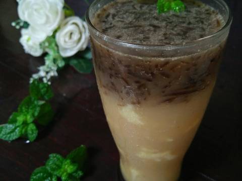 - Masukkan kolang kaling... tunggu sebentar sambil diaduk.. matikan api. Masukkan tape...Cara penyajian taruh di gelas saji... tambahkan cincau... ini kuparut dgn parut keju... 😜