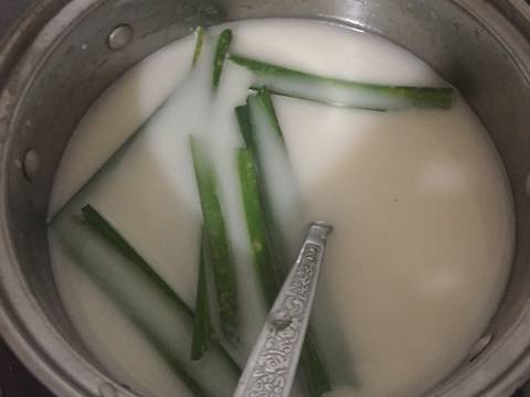 Lalu kalau pacar cina sudah kenyal, saring. Lalu masukan pacar cina kedalam rebusan santan tadi, tunggu sebentar, lalu matikan api. Siap disantap